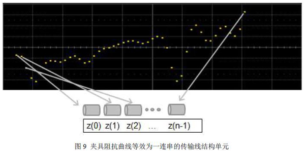时域Gating算法会将待剥离(夹具的阻抗)部分(我们称作为Gated Element)的阻抗曲线看作为一连串的传输线结构单元,如下图9所示: