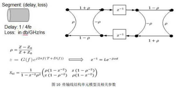 然后为每一个传输线结构单元建立一个单元模型(Segment),每个单元模型(Segment)的延时(Delay)和损耗(Loss)都可以通过整个剥离模型的阻抗曲线中已知的参数如阻抗,反射系数,整体延时和损耗等获得,如下图10所示,G(f)即为和频率相关的损耗参数,D(f)为和频率相关的延时参数,这两个函数均可以通过已知的阻抗曲线和整体延时以及损耗获得。这样就可以推导出每一个单元模型的S参数,如下图所示,更详细的原理可以参考Teledyne LeCroy(力科)的专利技术文章。