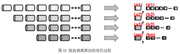 然后,剥离部分(Gating Element)的每一个单元模型的S参数(剥离前)被代入阻抗剥离算法中,迭代算法遍历计算整个剥离部分(Gating Element),每次消除完前面一个单元模型(Segment)的影响后重新计算阻抗曲线图,最后从这个算法中得到剥离部分的每一个单元模型的S参数(剥离后),如下图11所示:
