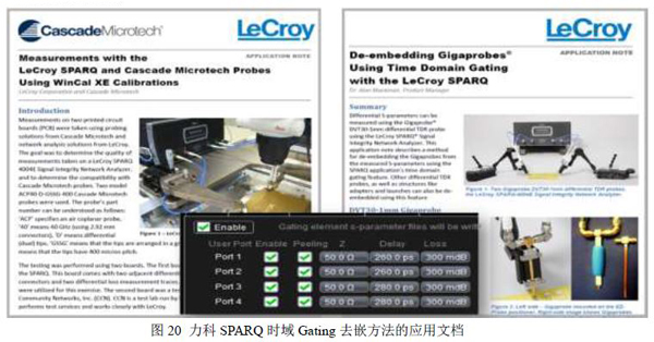 下图20所示为使用力科的SPARQ和时域Gating去嵌方法实现对Gigaprobe探头进行去嵌的两篇技术白皮书: