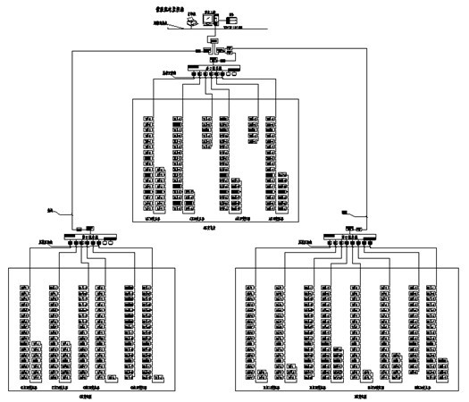 本电能管理系统主要实现先锋国际广场三个变电所的0.4kV配电系统的用电监测与电能管理;监测范围为香港新世界变电所的T1、T2,国投运营中心变电所的T3、T4、T5、T6,以及大润发变电所的T7、T8、T9、T10变压器的低压进线柜、联络柜、馈线柜中的智能电力仪表,从而实现远程实时监测和电能管理。该系统总计有420只PZ80-E4/C仪表,分20条总线,由于三个变电所之间距离较远,并且较为分散,采用每个变电所内自行组网,然后通过先锋国际的视频监控光纤传至到国投运营中心的消控中心,通过光电转换器和交换机,连接至监控电脑,实该现场总线上仪表与监控主机的数据连通。