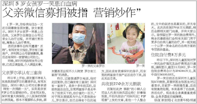 “罗一笑事件”曾经闹得沸沸扬扬,罗尔将女儿罗一笑罹患白血病的遭遇发布到微信公众号,博得大量网友同情,数万网友纷纷通过微信赞赏功能捐款,短时间内账号受捐数额达到上限,引起腾讯官方关注,后经调查文章隐瞒了部分事实真相,赞赏款被冻结处理,部分网友表示有被“骗钱”的感觉。