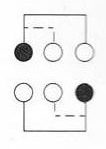 左图的自锁开关是:开关按钮不按下,两列的两头触点联通;开关按钮按下,每列的中间按钮和边上的一个按钮接通; 即,开关按钮“不”按下,黑色触点经由 实线 连接触点; 开关按钮按下,黑色触点经由 虚线 连接触点导通;