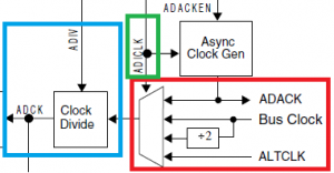 ADCK-代表AD时钟,他由ADICLK决定,可以是总线时钟、总线时钟/2、备用时钟(ALTCLK)、异步时钟ADACK。