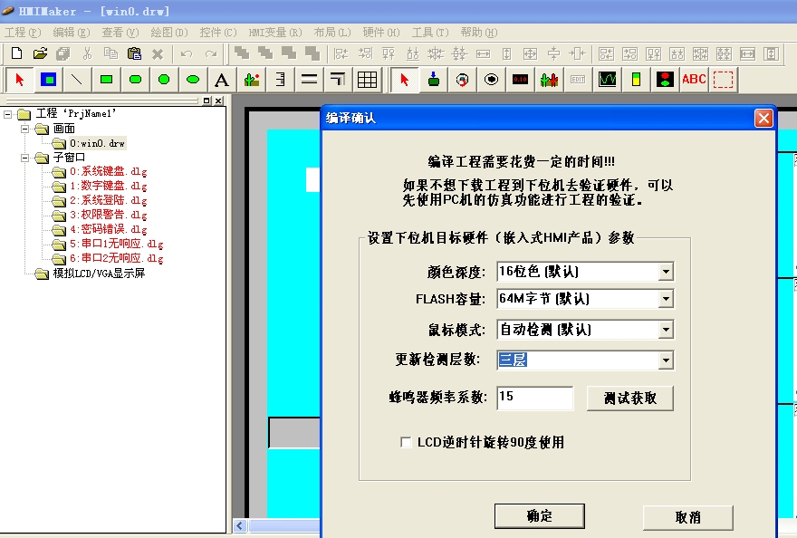 八、设计好界面之后,点击菜单【硬件】,【编译工程】, 设置好编译参数,确定。