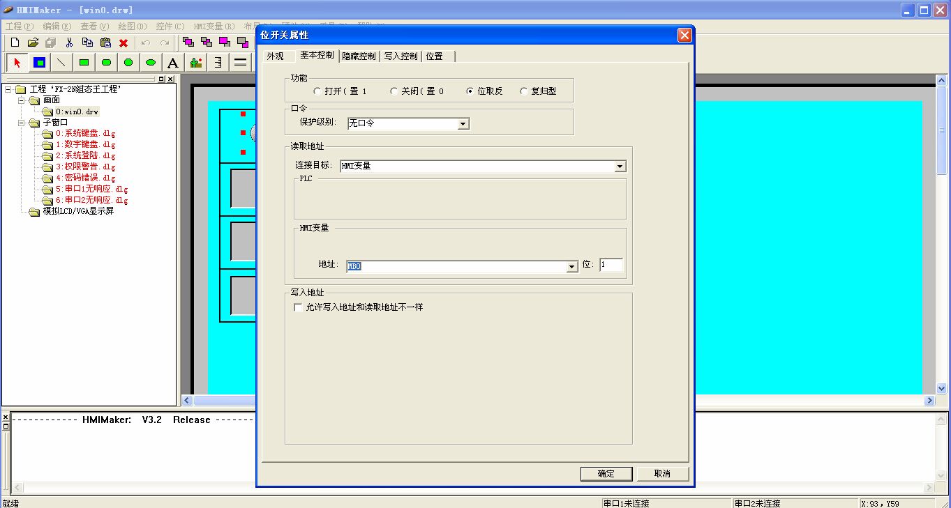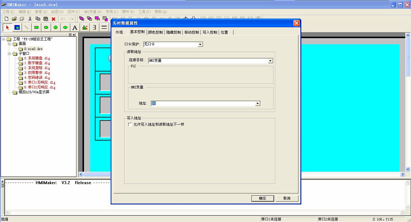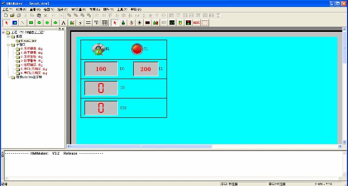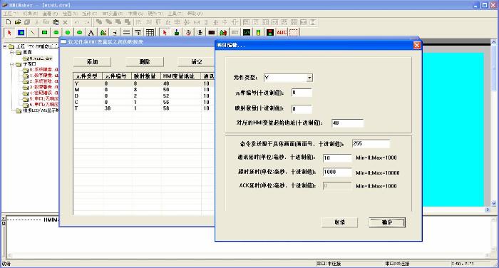 七、易显嵌入式工控机人机界面组态软件HMImaker具有模拟功能。支持软件在电脑里与PLC进行通讯。串口号:设置com1,2,3,4其中一个,也就是电脑里的串口号,与PLC连接。这样就可以在画面里对PLC控制操作了。