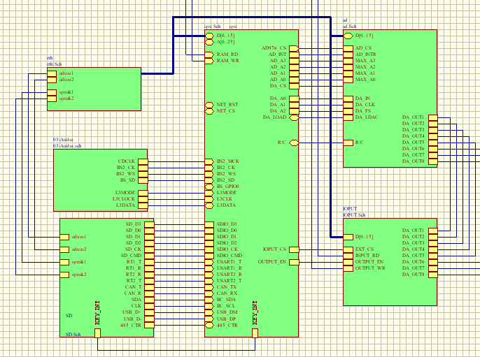 语音信号的采集用UDA1341TS,通过STM32F103ZET6的IIS接口连接,由于STM32F103ZET6只有一个信号输入输出引脚,所以只能工作在单工通信模式。